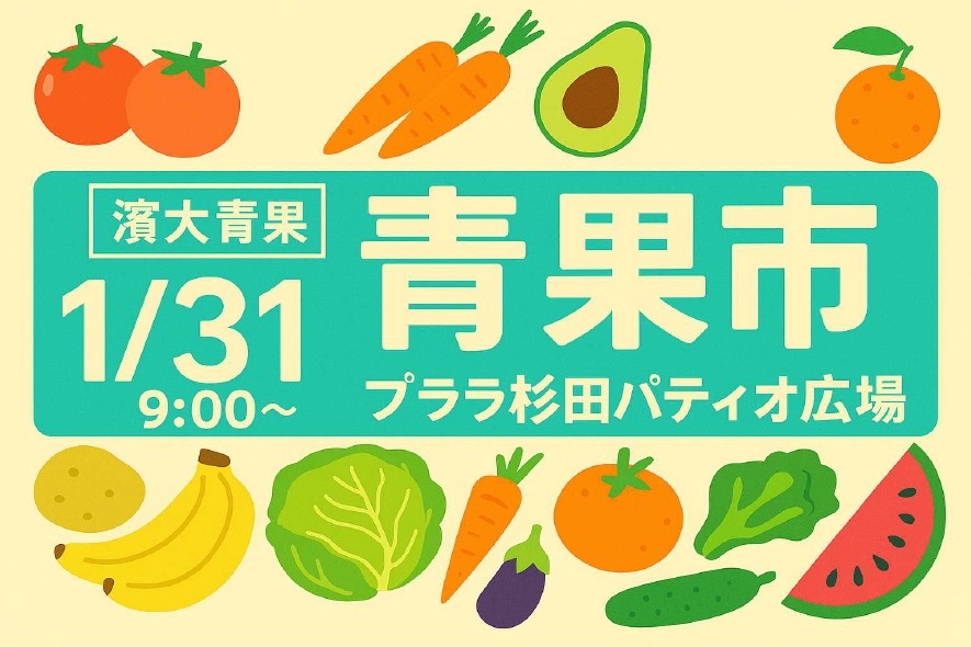 1月31日(土)9:00より、プララ杉田パティオ広場にて、旬の野菜と果物がずらりと並ぶ「青果市」を開催します。